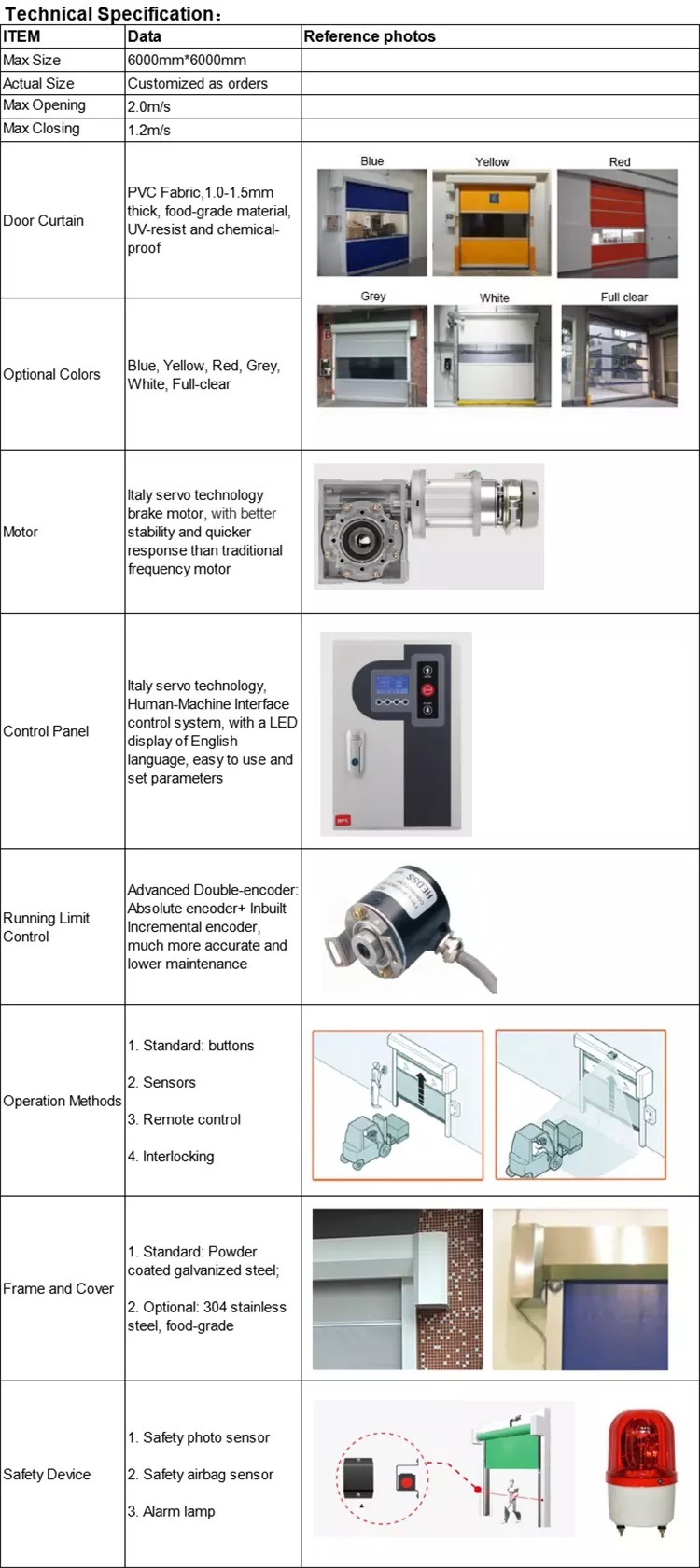 Il portello ad alta velocità è Ampiamente usato in fabbriche ed in magazzini moderni. Può Funzionare molto nell'alta velocità (fino a 2.5m/s) e